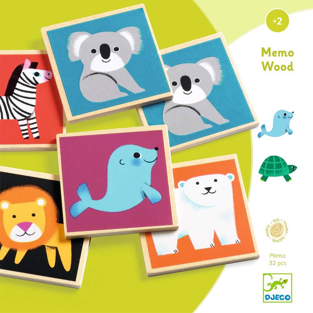Παιχνίδι μνήμης της εταιρείας Djeco στο οποίο περιέχονται δύο πλακίδια από το κάθε ζωάκι. Τοποθετείστε τα 32 ξύλινα πλακίδια ανάποδα και αφήστε το παιδί να εξασκήσει την μνήμη του προσπαθώντας να βρει τα ζευγάρια άγριων ζώων. Μία υπέροχη ιδέα δώρου για κάθε παιδάκι. Κατάλληλο από 2 ετών και άνω. Διαστάσεις: 23 x 23 x 3 εκ. Διαστάσεις πλακιδίου: 6 x 6 x 1 εκ.