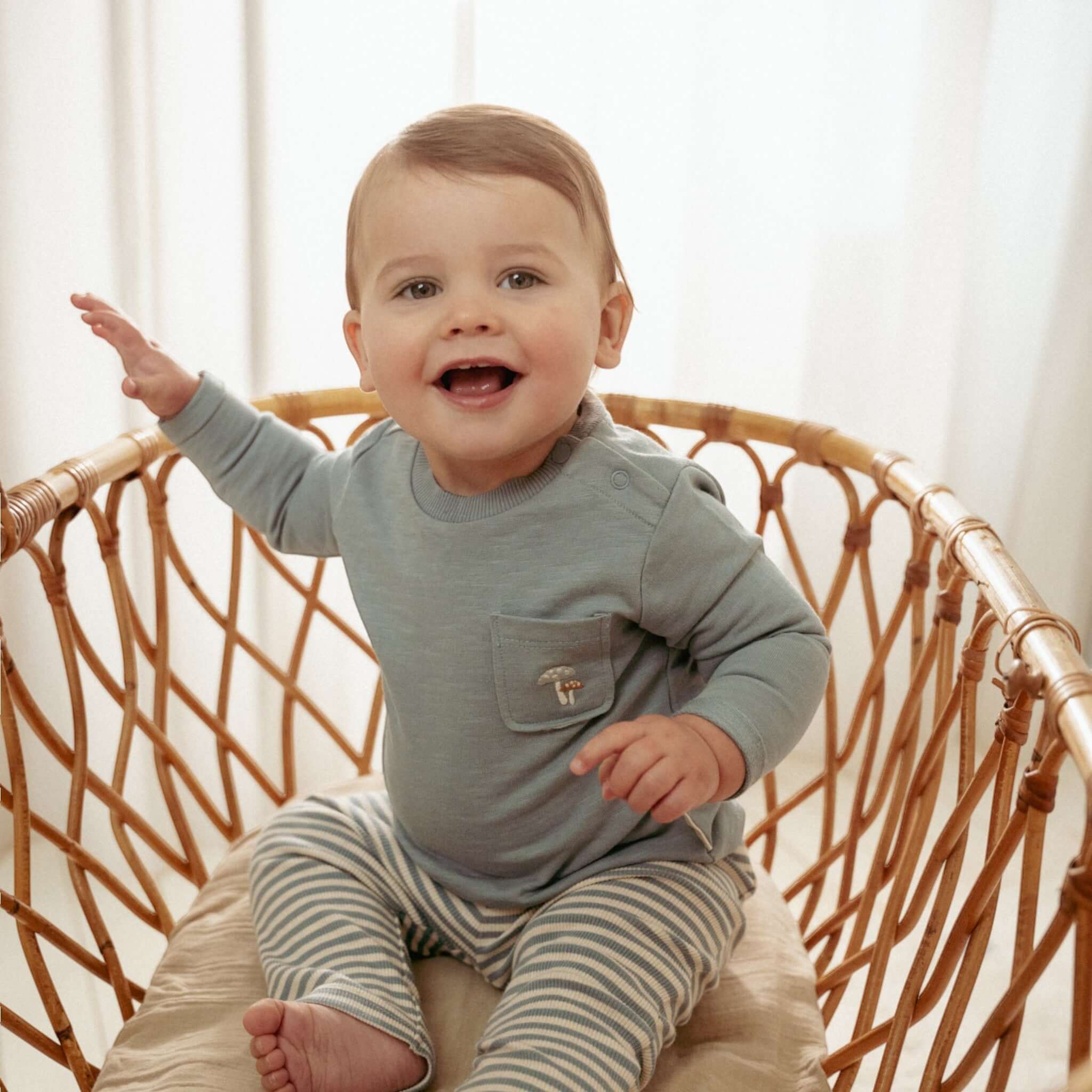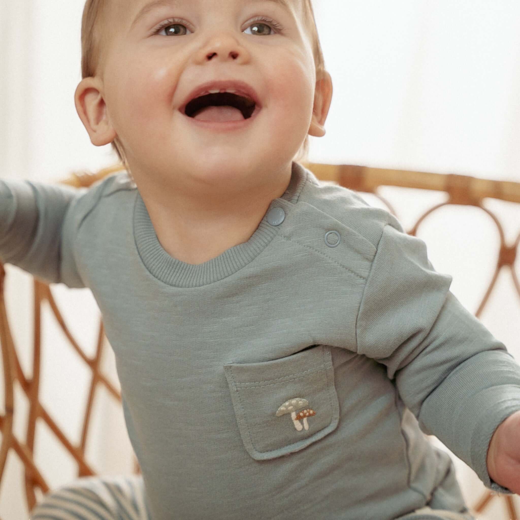 Αυτό το μακρυμάνικο μπλουζάκι σε μπλε απόχρωση είναι ιδανικό για κάθε περιπέτεια. Φτιαγμένο από απαλό οργανικό βαμβάκι, προσφέρει άνεση και ελευθερία κινήσεων στο μικρό σας.