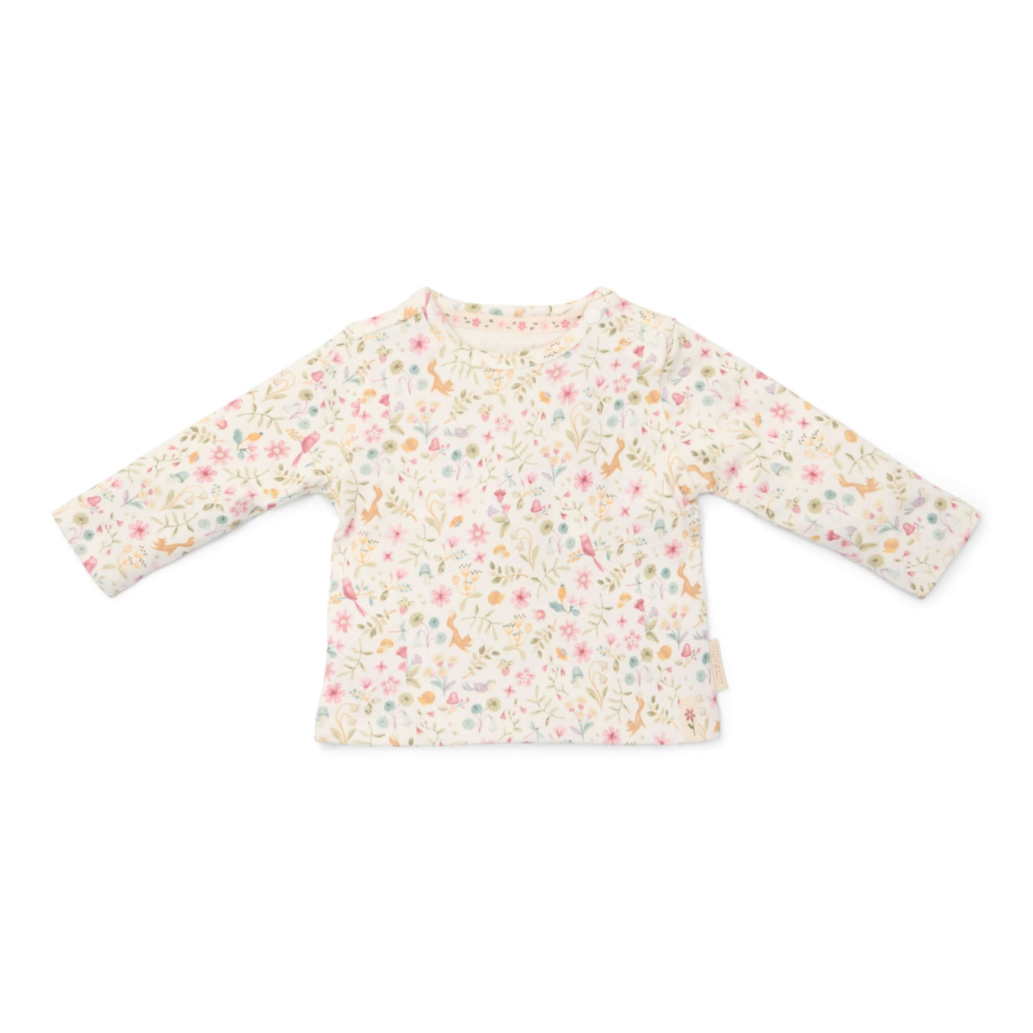 Αυτό το υπέροχο μακρυμάνικο μπλουζάκι είναι διακοσμημένο με ένα χαριτωμένο μοτίβο από λουλούδια, φύλλα, πουλάκια, σκαντζόχοιρους και παιχνιδιάρικους σκίουρους, φέρνοντας τη μαγεία της συλλογής Fairy Garden.