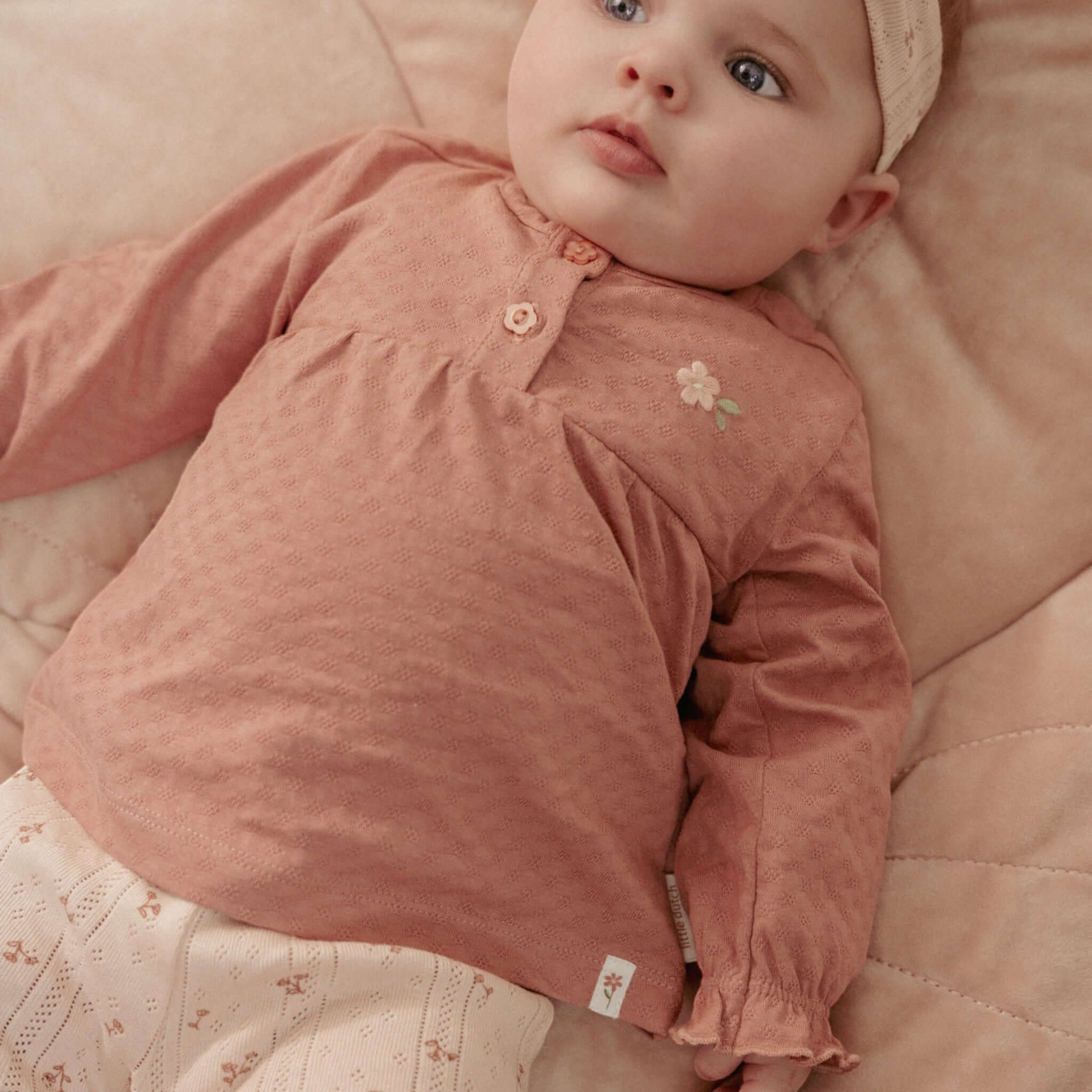 Αυτό το υπέροχο μακρυμάνικο μπλουζάκι, φτιαγμένο από απαλό οργανικό βαμβάκι με λεπτή υφή, προσφέρει άνεση όλη μέρα στο μωράκι σας.