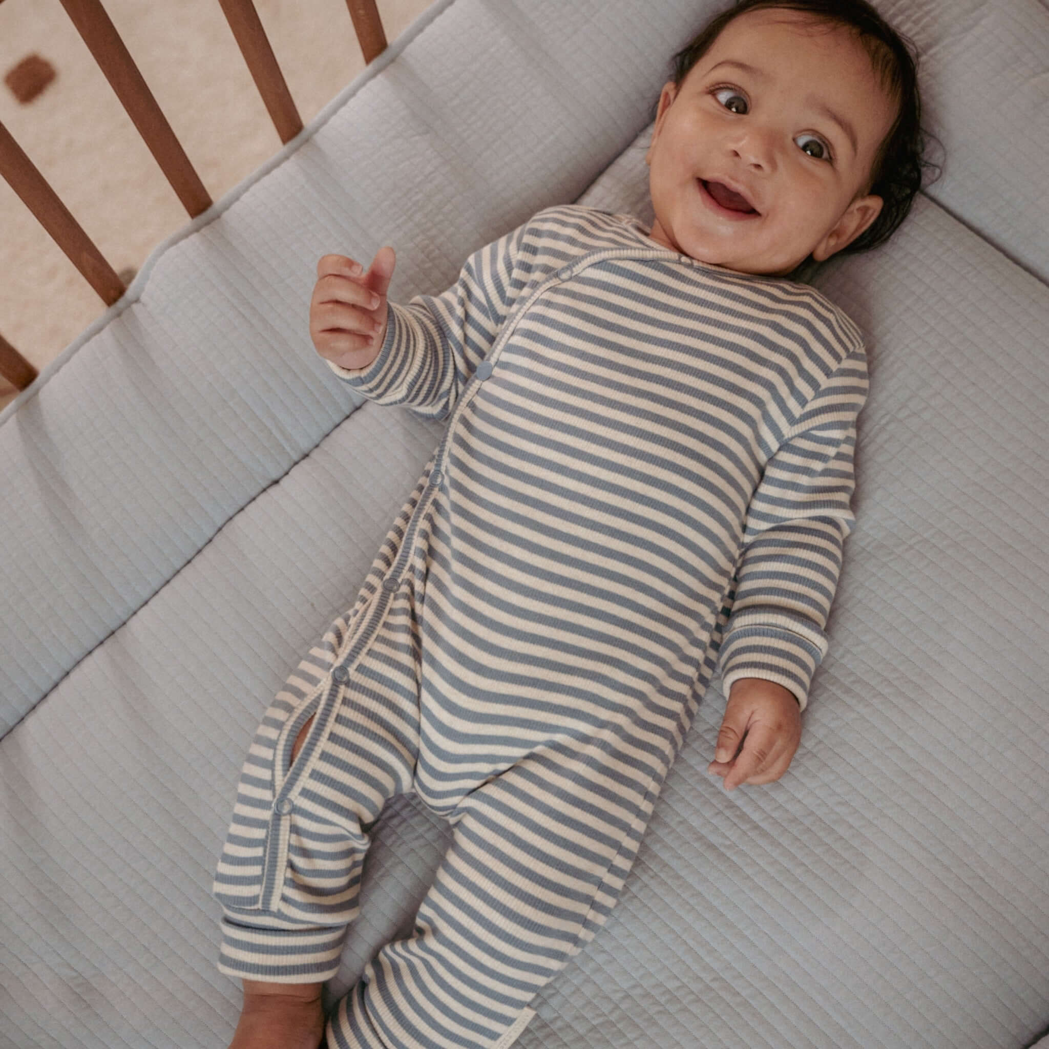 Αυτό το ολόσωμο φορμάκι αγκαλιάζει το μωρό σας με απαλότητα από την κορυφή ως τα νύχια. Με διακριτική ριμπ υφή σε όμορφη μπλε-κρεμ απόχρωση και πρακτικό κρουαζέ άνοιγμα για εύκολο ντύσιμο, είναι ιδανικό για τις πρώτες μέρες.