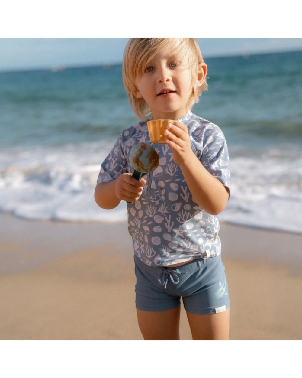 Είτε εξερευνά την παραλία είτε ανακαλύπτει θησαυρούς στην άμμο και τη θάλασσα, αυτό το μαγιό είναι έτοιμο για περιπέτεια.