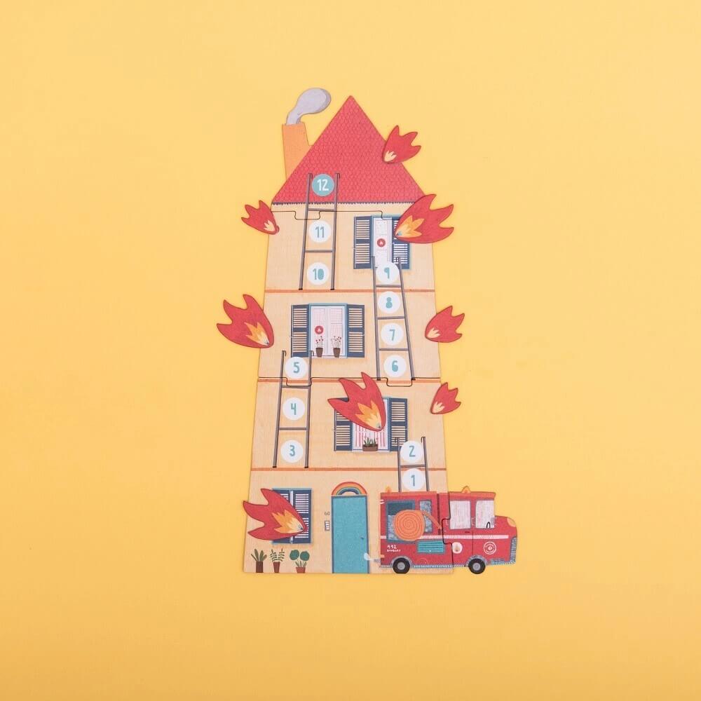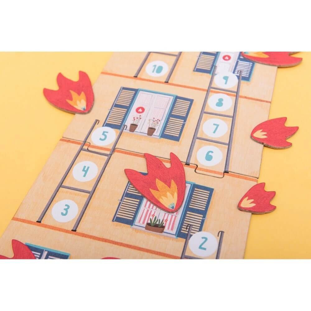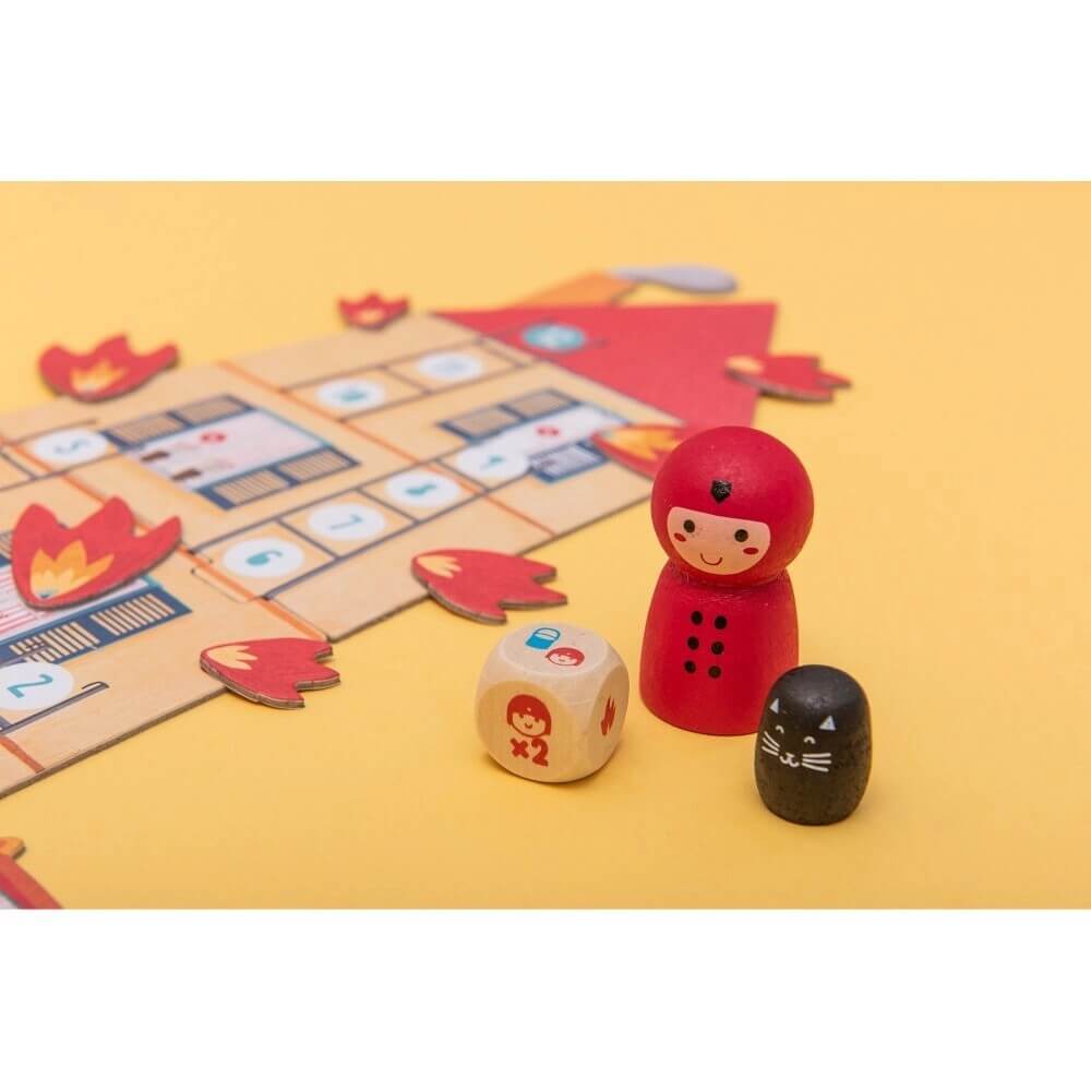 Βοηθήστε τον γενναίο πυροσβέστη να σβήσει όλες τις πυρκαγιές, για να σώσει τη γάτα που είναι παγιδευμένη στη στέγη και να την μεταφέρει στο πυροσβεστικό όχημα. Ένα συνεργατικό επιτραπέζιο παιχνίδι που βοηθάει στην εκμάθηση των αριθμών καθώς και στη λήψη αποφάσεων για την καλύτερη στρατηγική που πρέπει να ακολουθήσουν οι παίκτες. Περιεχόμενα: 1 ξύλινος πυροσβέστης, 1 ξύλινη γάτα, 1 ξύλινο ζάρι, 9 κομμάτια φωτιάς, 12 κουβάδες νερού, 1 ταμπλό, διαστάσεων 26 x 47 εκ.