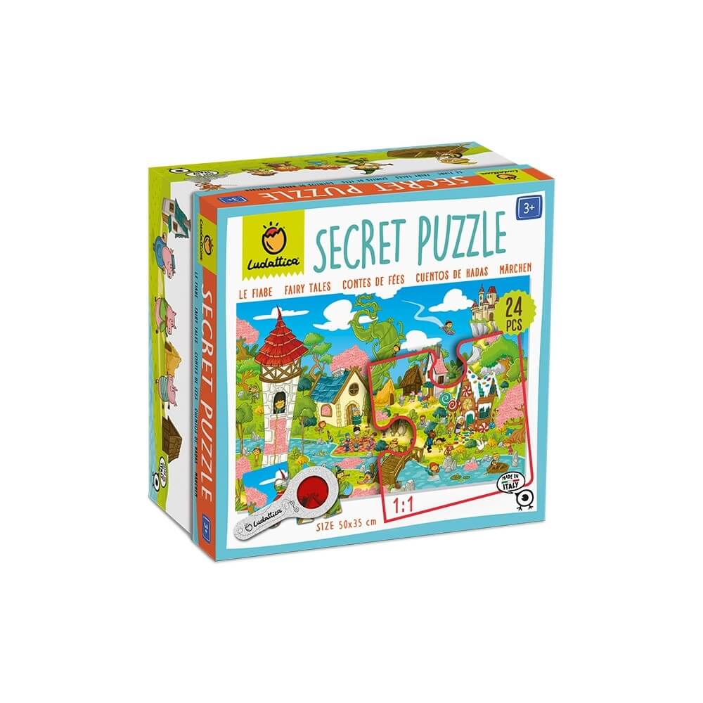 Το παιχνίδι αυτό περιλαμβάνει ένα παζλ 24 κομματιών με θέμα «Τα Παραμύθια» κι ένα πρωτότυπο φακό για έξτρα διασκέδαση! Το παιδί συνθέτει το παζλ και στη συνέχεια με το φακό ανακαλύπτει διάφορες μικρολεπτομέρειες που κρύβονται, μέσα στην εικόνα, στα κομμάτια με την αχνή εικονογράφηση! Ένα διασκεδαστικό παιχνίδι που ενδυναμώνει τις λεπτές κινητικές δεξιότητες, τονώνει την περιέργεια και την παρατηρητικότητα και παράλληλα αυξάνει τη συγκέντρωση του παιδιού.