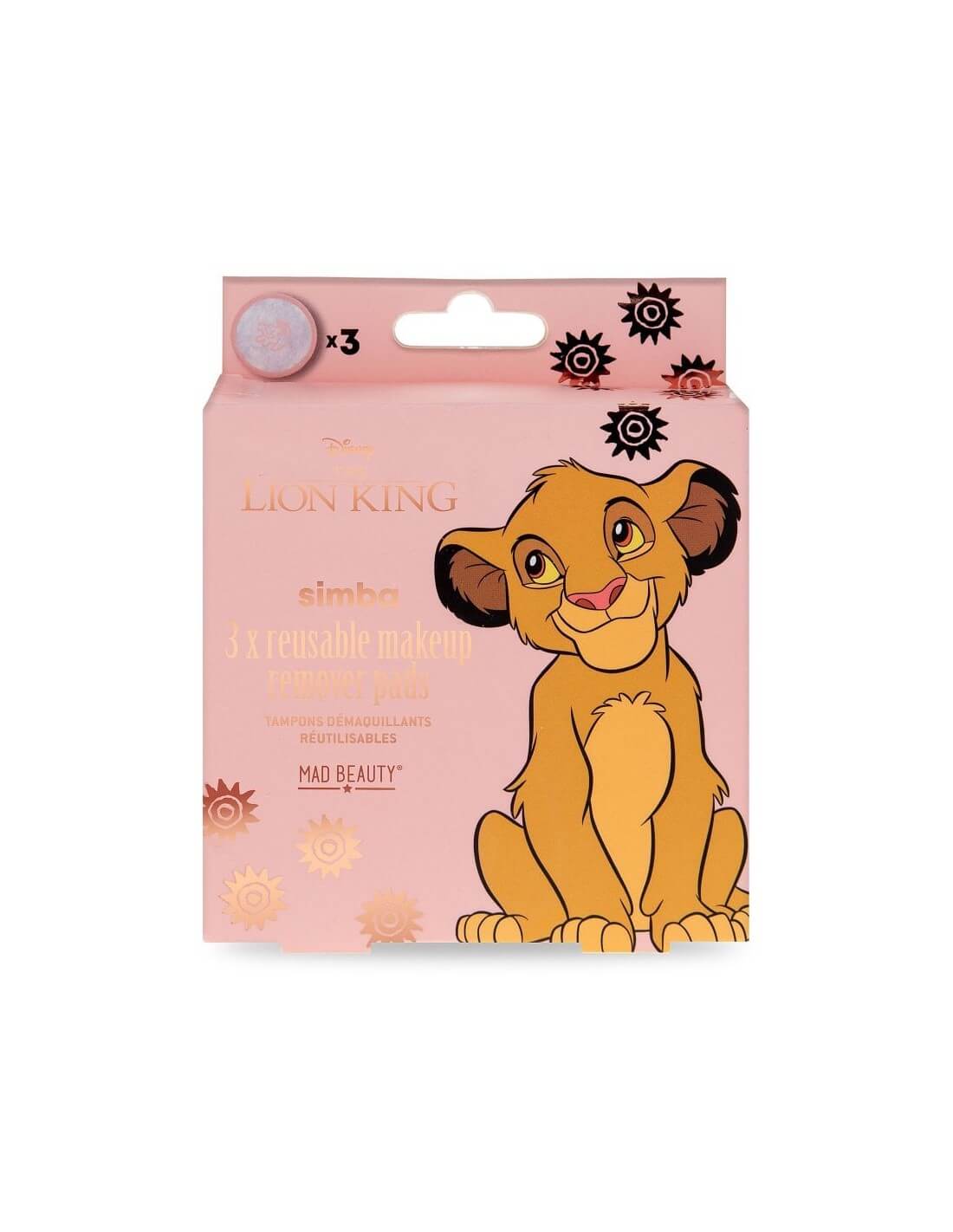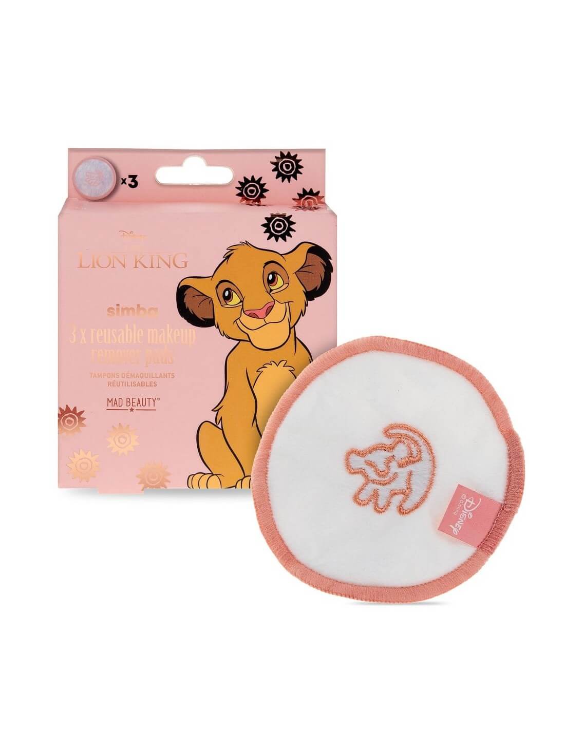Φροντίστε το δέρμα σας αλλά και τον πλανήτη με αυτά τα εύχρηστα, επαναχρησιμοποιούμενα επιθέματα ντεμακιγιάζ  εμπνευσμένα από την σειρά The Lion King της Disney. Κάθε εξαιρετικά μαλακό μαξιλαράκι διαθέτει ένα χαριτωμένο σχέδιο του Simba. Απλώς προσθέστε νερό ή το αγαπημένο σας διάλυμα καθαρισμού και σκουπίστε απαλά το πρόσωπο για να αφαιρέσετε το μακιγιάζ και τους ρύπους από το δέρμα σας. Πλένεται στο πλυντήριο στους 30 βαθμούς.