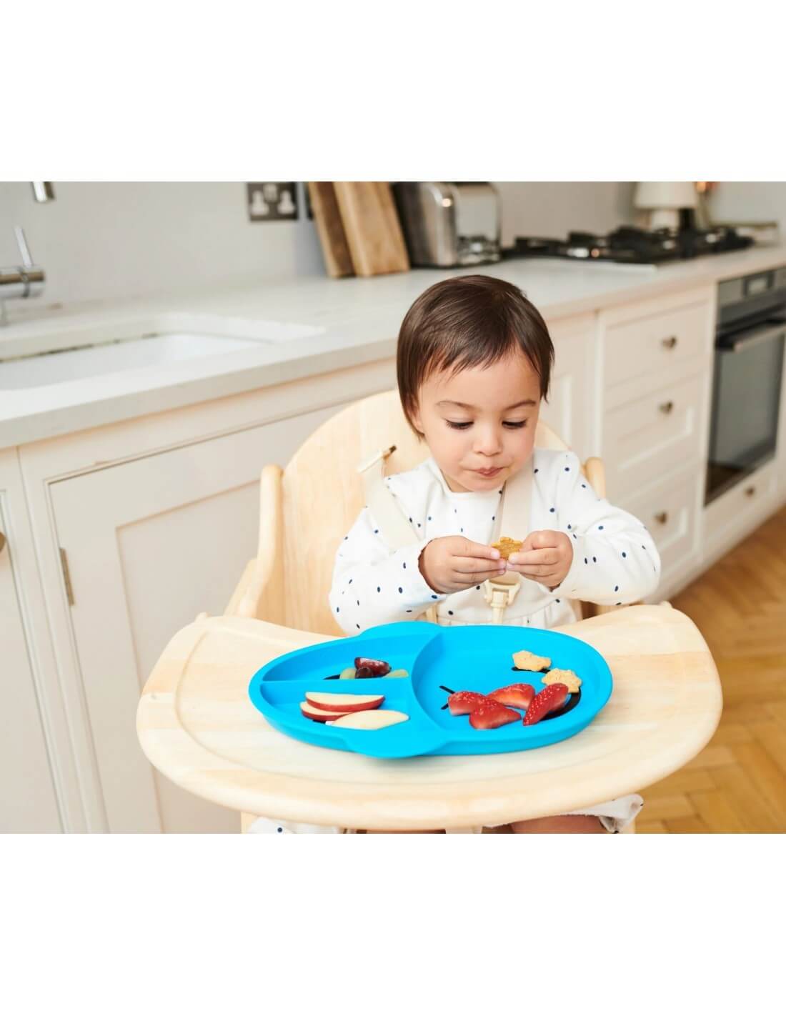 -Τα διαφορετικά τμήματα στο πιάτο επιτρέπουν πολλαπλές ομάδες τροφίμων και υφών, διαχωρισμένες για ευκολία στο μοίρασμα και την επιλογή τους, προάγοντας την αυτονομία του παιδιού και τη σωστή διατροφή του.